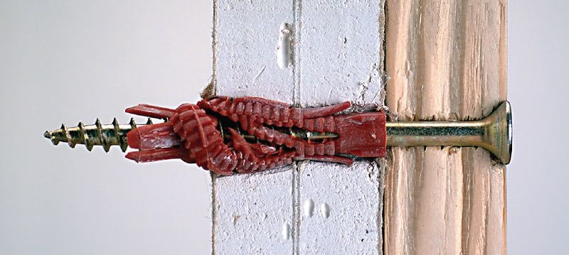 - More reliable installation – Hilti HUD-L wall plugs are engineered to guide the screw with no breaking through or wandering out of the anchor body